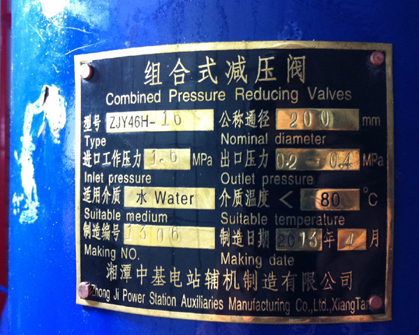武都電站3#機組技術供水系統上的ZJY46H組合式減壓閥(DN200-16C)設備型號為ZJY46H-16,編號3號機公稱通徑為200mm,管道流量為420m3/h,減壓閥安裝高程為565m,尾水高程為573m